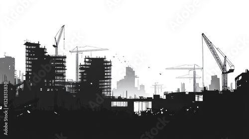 Obraz premium Urban Construction Site Silhouettes