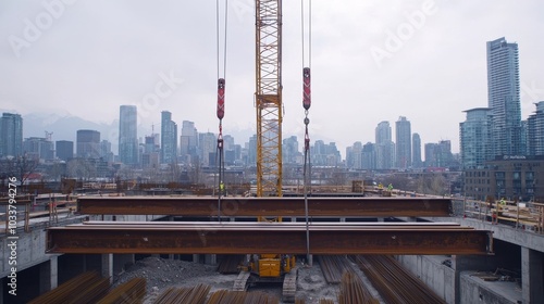Fototapeta premium Urban Construction with City Skyline in Background