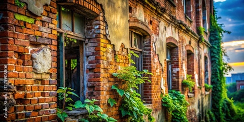 Fototapeta premium Urban decay's haunting legacy: partially demolished houses, a photographic...
