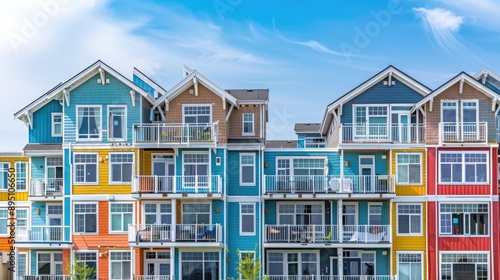 © Olena, Fototapeta premium Urban Density. Contemporary Mixed-Use Real Estate Development with Blue Sky Background