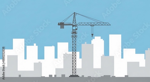 Obraz premium Urban development construction crane silhouette against cityscape background