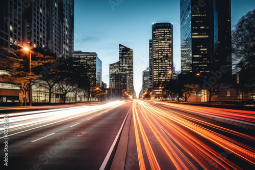 © evening_tao, Obraz premium Urban Dusk Traffic: A Symphony of Light Trails