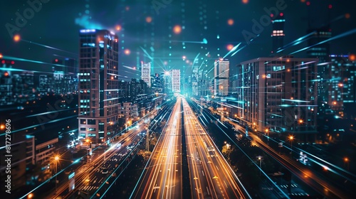 Fototapeta premium Urban electricity poles linked to a smart grid for energy distribution and...
