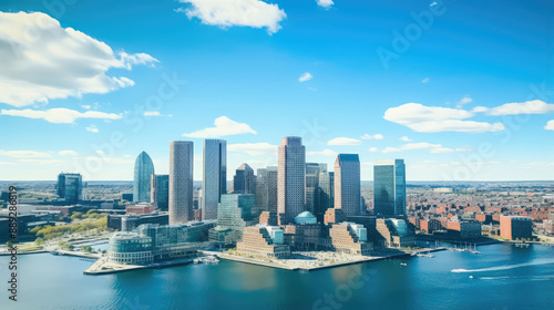 Naklejka premium Urban Elegance: Skyline Above the Water
