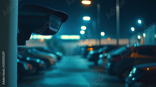© Hafaiz, Fototapeta premium Urban Evening Parking Lot with Security Camera