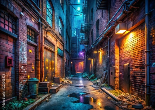 © Four888, Fototapeta premium Urban Exploration Comic Book Panel Background: Grungy Cityscape for Graphic Novel Design