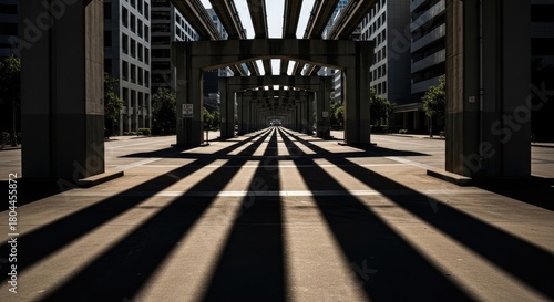 Fototapeta premium Urban exploration downtown with striking shadows and architectural design perfect for cityscapes and urban planning visuals