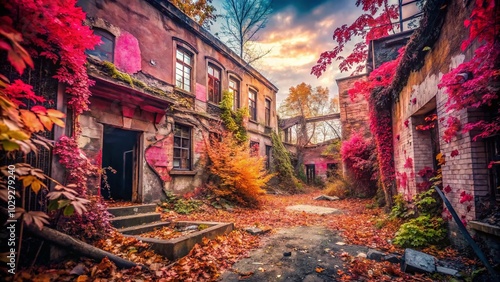 © Four888, Fototapeta premium Urban Exploration in October: Vibrant Pink Background Aesthetic