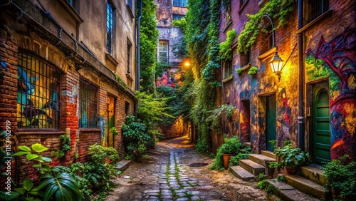 Fototapeta premium Urban Exploration Lyon France: Hidden Alleyways & Graffiti Art