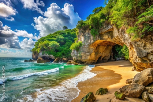 © kansak01, Fototapeta premium Urban Exploration of Aguadilla's Survival Beach Caves: Stunning Rock Formations on Puerto Rico's Northwest Coast