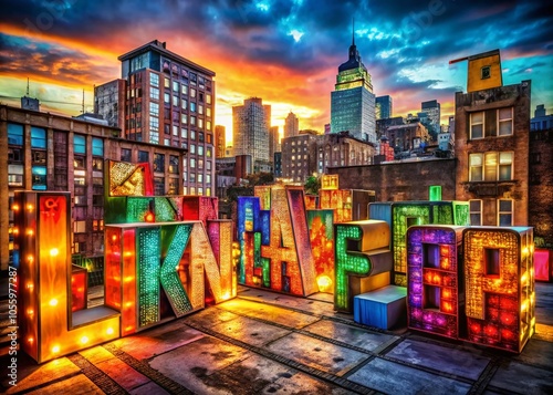 © Supittra, Naklejka premium Urban Exploration of Bright Placard Alphabet in Vibrant Cityscape