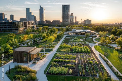 Obraz premium Urban farming design city park visual landscape green environment aerial view...