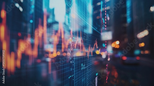 © วรรณภา มะโนศรี, Naklejka premium Urban Financial Market Trends in Motion