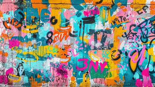 © Ahmad-Muslimin, Fototapeta premium Urban Graffiti Art: Vibrant, Seamless Pattern on Weathered Wall