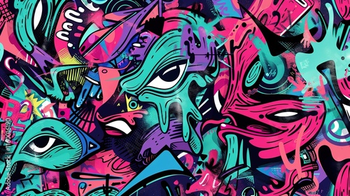 Naklejka premium Urban graffiti pattern wallpaper