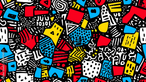 © InspirationDesign, Fototapeta premium Urban graffiti seamless pattern with geometric shapes