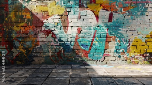 Fototapeta premium Urban graffiti wall background with colorful spray paint art