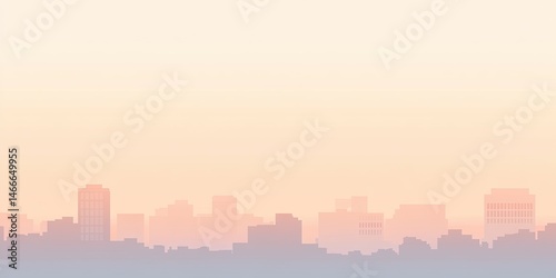 © background, Naklejka premium Urban Haze Cityscape Silhouette at Dawn in Soft Pastel Tones.