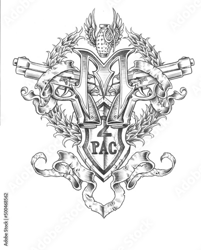 Fototapeta premium urban heraldic shield design with guns and grenade