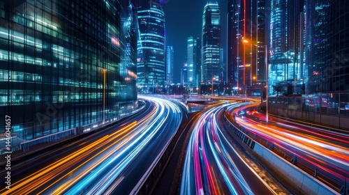 © mOuntase graphic, Obraz premium Urban highway at night, lights blurred by motion