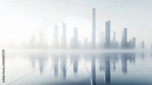 Obraz premium Urban Illusion: Commercial CBD Skyline with Exhibition Platforms and E-Commerce Under a Brilliant Sun