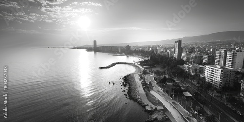 Fototapeta premium Urban landscape by the waterfront, suitable for various design projects