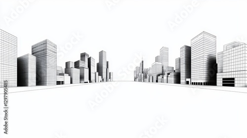 © K silver, Naklejka premium Urban landscape illustration cityscape digital art minimalist aerial view geometric design
