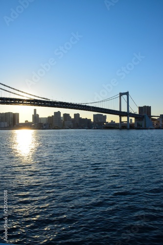 Fototapeta premium Urban landscape of Tokyo, Japan at sunrise with rainbow bridge