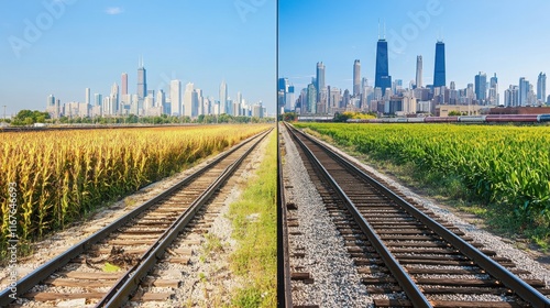 Fototapeta premium Urban landscape transformation before and after chicago photography daylight...
