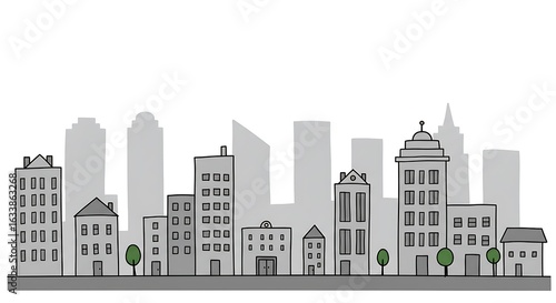 © albertART, Naklejka premium Urban Landscape Vector Illustration Minimalist Cityscape with Buildings and Greenery