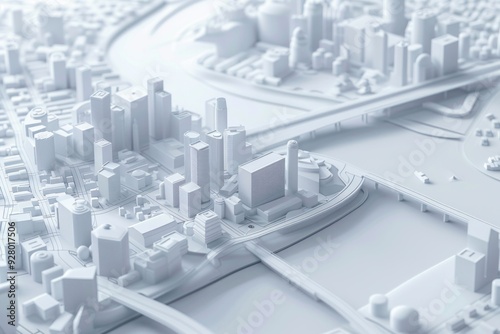 Naklejka premium Urban landscape with highway and bridge in 3d model for travel and business concepts
