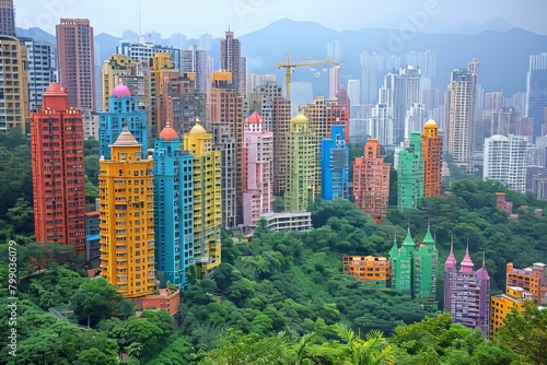 © denklim, Naklejka premium Urban Landscape With Tall Buildings