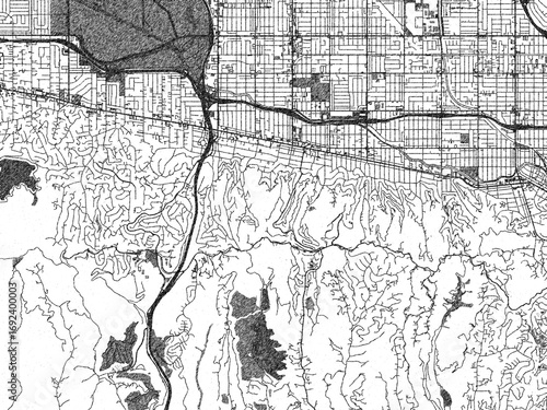 Naklejka premium Urban map of Sherman Oaks, California, illustrated in monochrome with a...