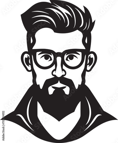 © BABBAN, Fototapeta premium Urban Minimalist Black Logo Icon of Cartoon Hipster Man Face Boho Whiskers Hipster Man Face Cartoon in Black Vector