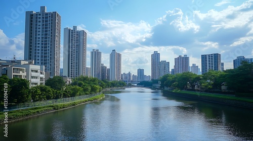 Fototapeta premium Urban Mystique Illustration with Cityscapes, Neon Lights, and Mysterious Atmosphere