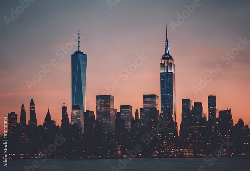 Obraz premium urban New York sunset City skyline Beautiful skyscrapers Panorama Aerial View...