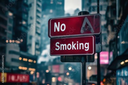 © Pejuang, Obraz premium Urban No Smoking Sign Against Blurred Cityscape Background