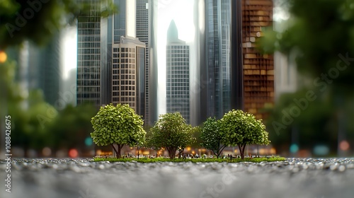 Obraz premium Urban oasis: Lush greenery amidst towering skyscrapers