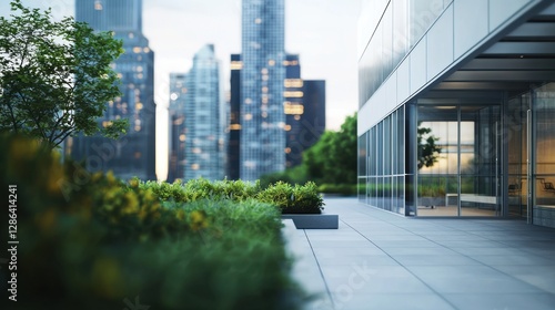 Fototapeta premium Urban Oasis: Modern Architecture Meets Rooftop Greenery