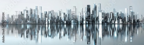 Fototapeta premium Urban Oasis. Modern Cityscape Reflection in a Serene Lake Landscape