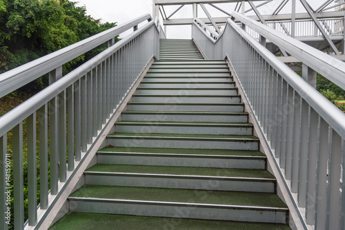 © bqmeng, Fototapeta premium Urban outdoor steel pedestrian bridge steps landscape