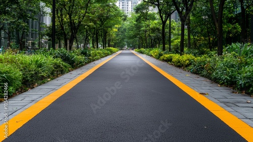 © Chaiyaporn, Obraz premium Urban Pathway Surrounded by Lush Greenery