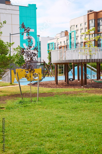 © khmelev, Fototapeta premium Urban playground with modern residential buildings