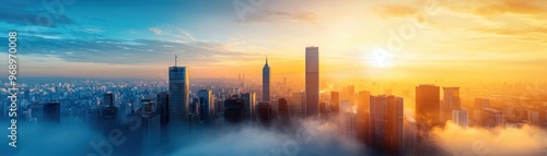 Fototapeta premium Urban Pollution Crisis - Aerial View of Smog-Filled City with Copy Space,...