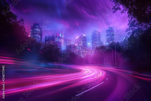 © Anna, Fototapeta premium Urban Pulse collage design captures the vibrant energy of city life at night with neon colors and dynamic movements