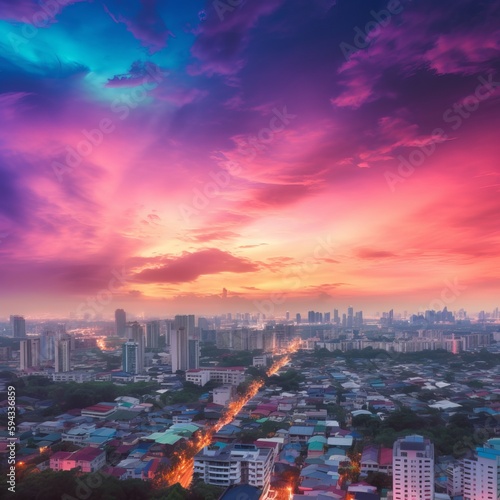 © Jardel Bassi, Fototapeta premium Urban Real Estate Concept - City on Twilight Color Sky