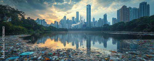 © Nattapat, Fototapeta premium Urban reflection of progress and pollution