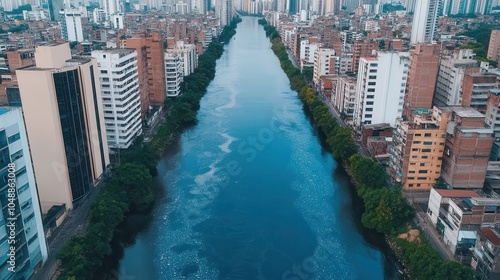 Fototapeta premium Urban River Flowing Through Cityscape