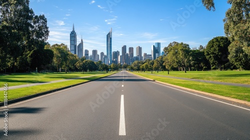 Fototapeta premium Urban road stretches towards city's modern skyscrapers