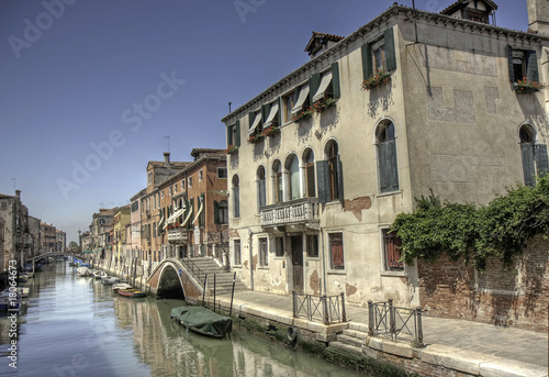 Naklejka premium Urban Scene at a canal in Cannaregio, Venice